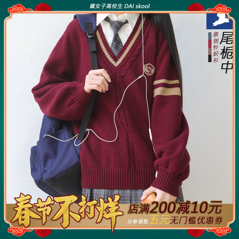 尾梔中黛女子高校生原創jk制服套頭針織衫毛衣紅情侶班服校服外套