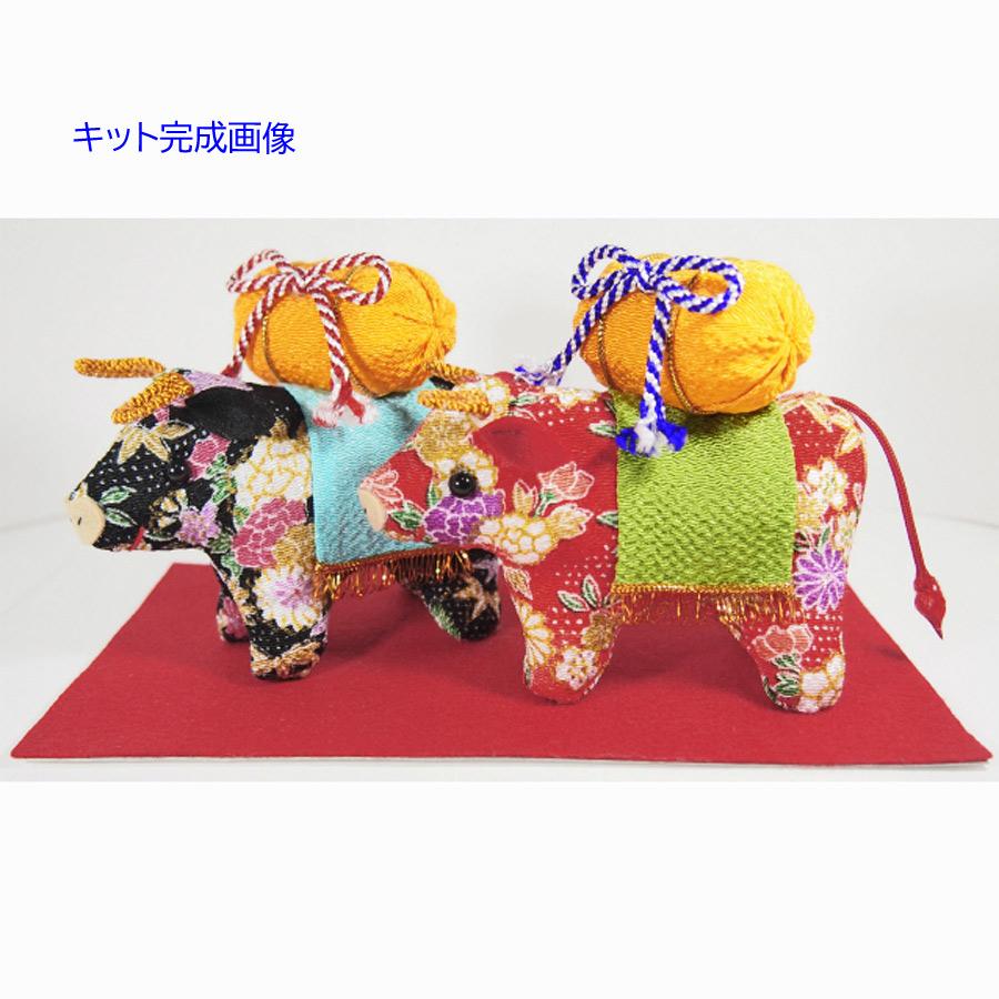 21 干支木目込み 手芸 クラフト 生地 キット 21 寿出世牛 ちりめん細工キット Rcp 布がたり ちりめん和柄生地と手芸丑年木目込干支セット